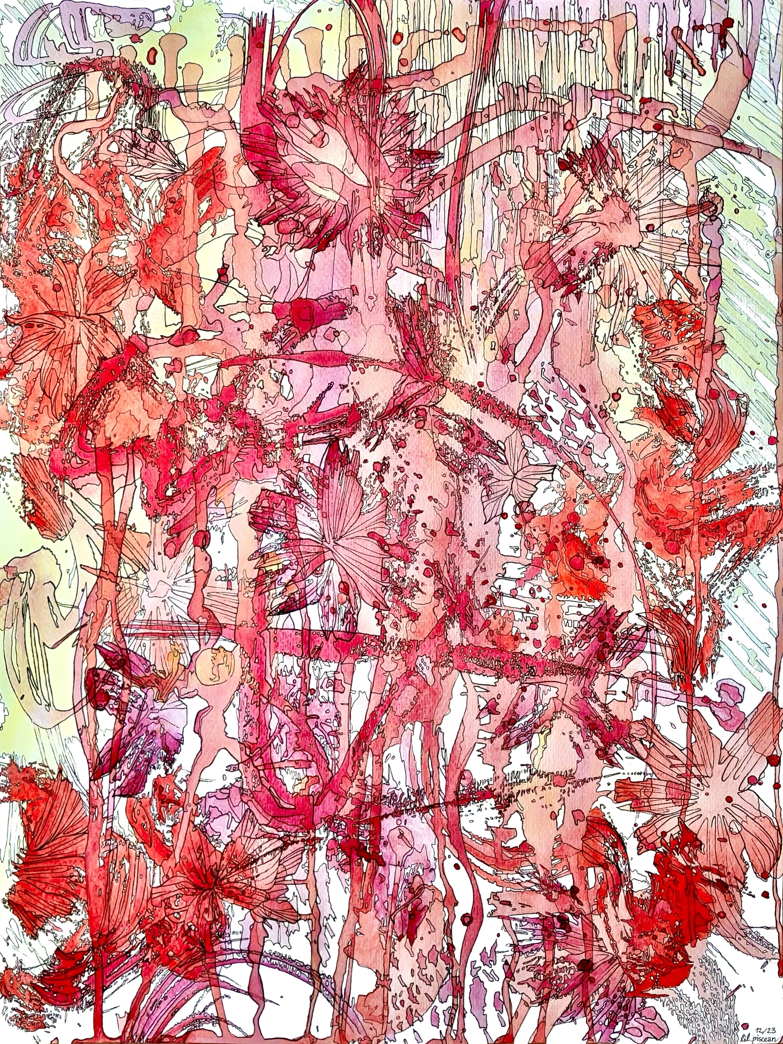 Painting with watercolors embraces randomness as a core element. When the paint mixes with water, it creates unpredictable patterns and hues, resulting in irregular, free-flowing, organic shapes. They positively lack the strict, defined lines and geometric precision of man-thought art, instead embodying fluidity.