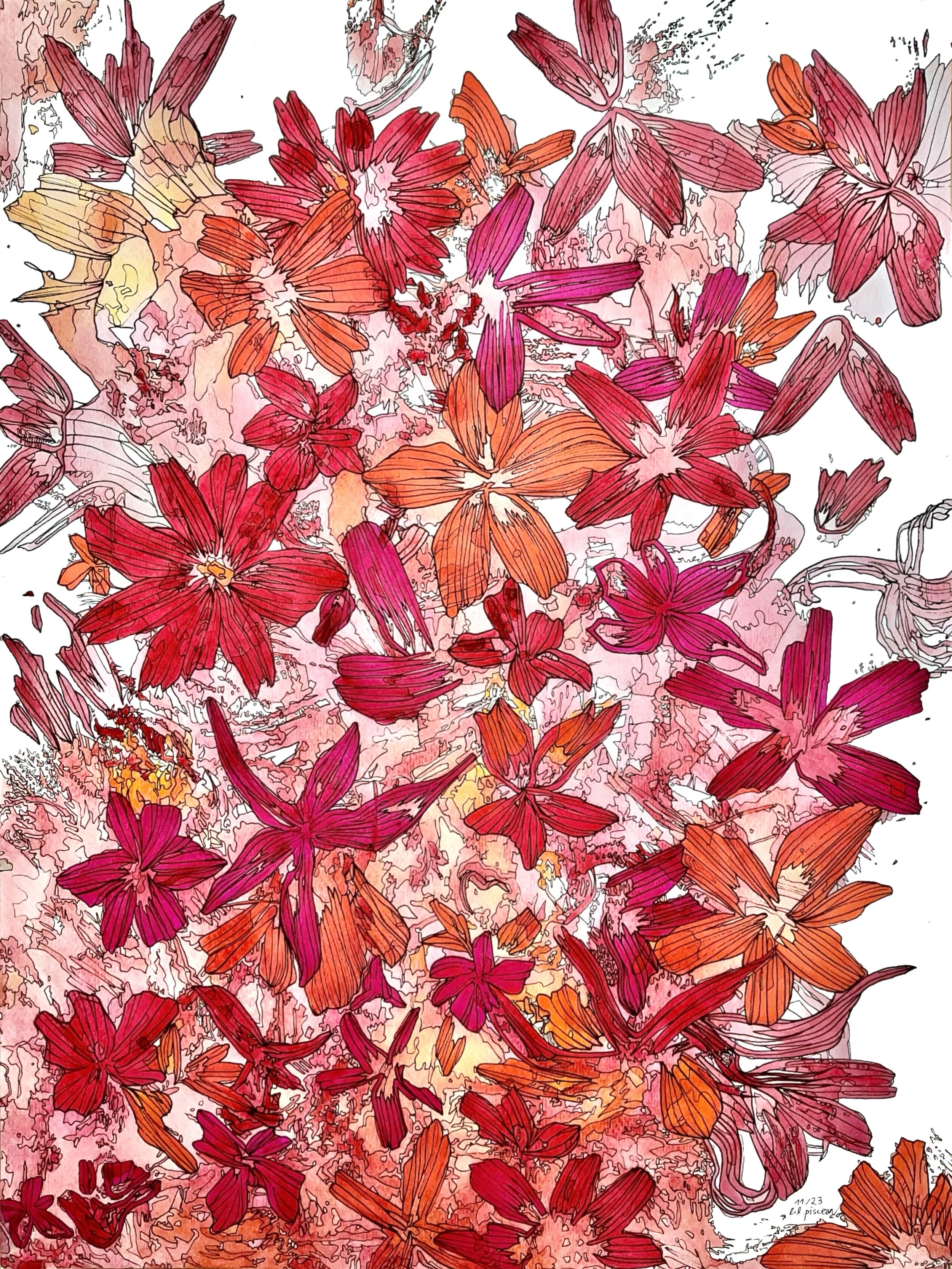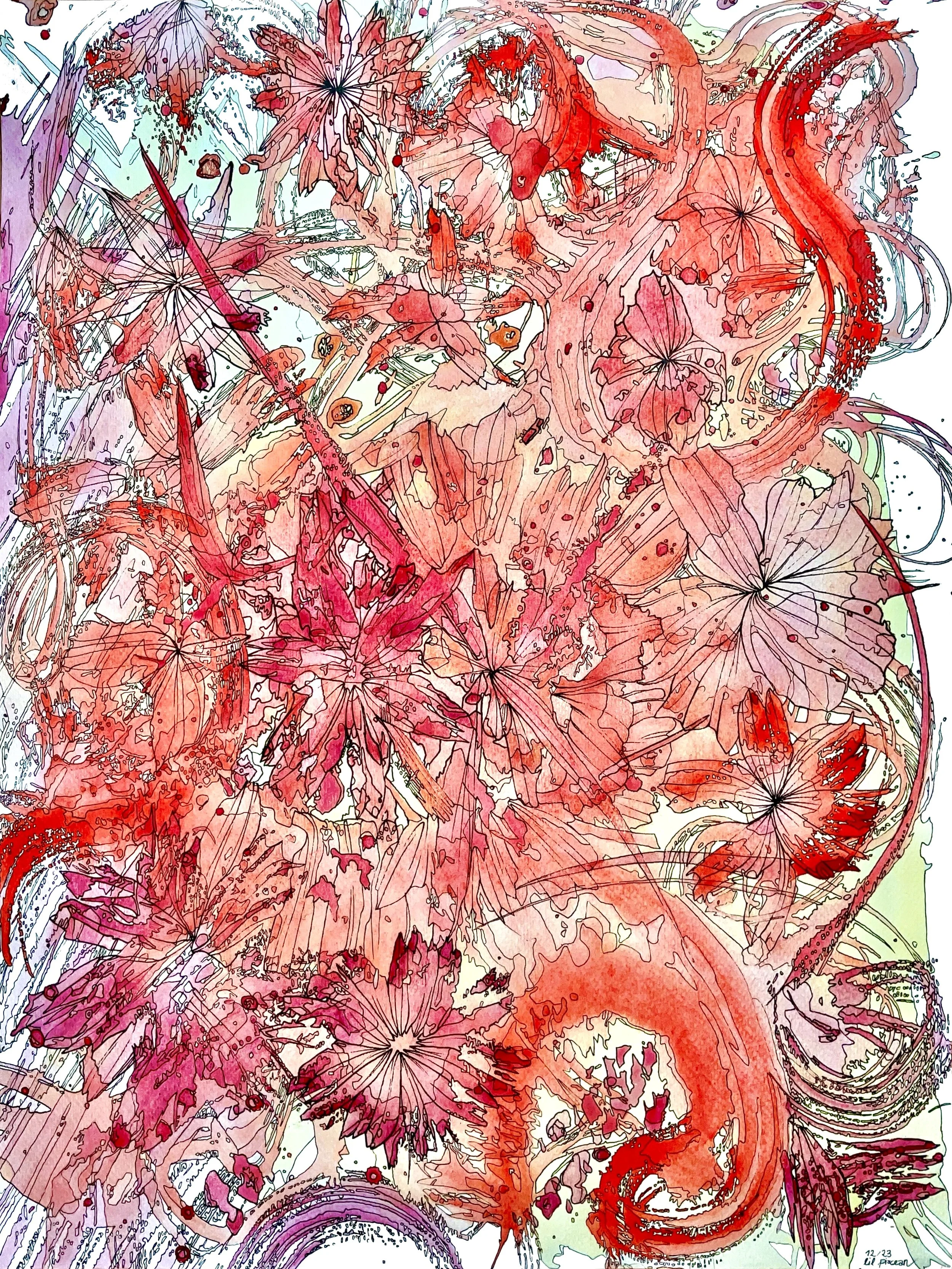 This unpredictability adds a layer of spontaneity. For me, that means allowing myself to let go of control and surrender to surprising blends and gradients that can’t be meticulously planned. Each stroke becomes a unique exploration of color and form. Embracing randomness can lead to stunning and unexpected results, fostering creativity where you wouldn’t expect it and develop a sense of freedom in the process.